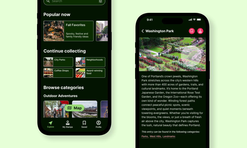 Wander Portland, an MVP mobile application designed for discovery and exploration.